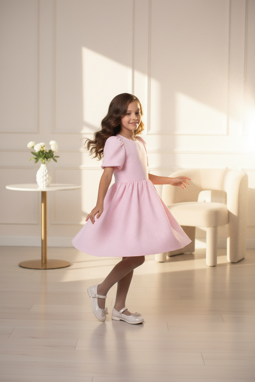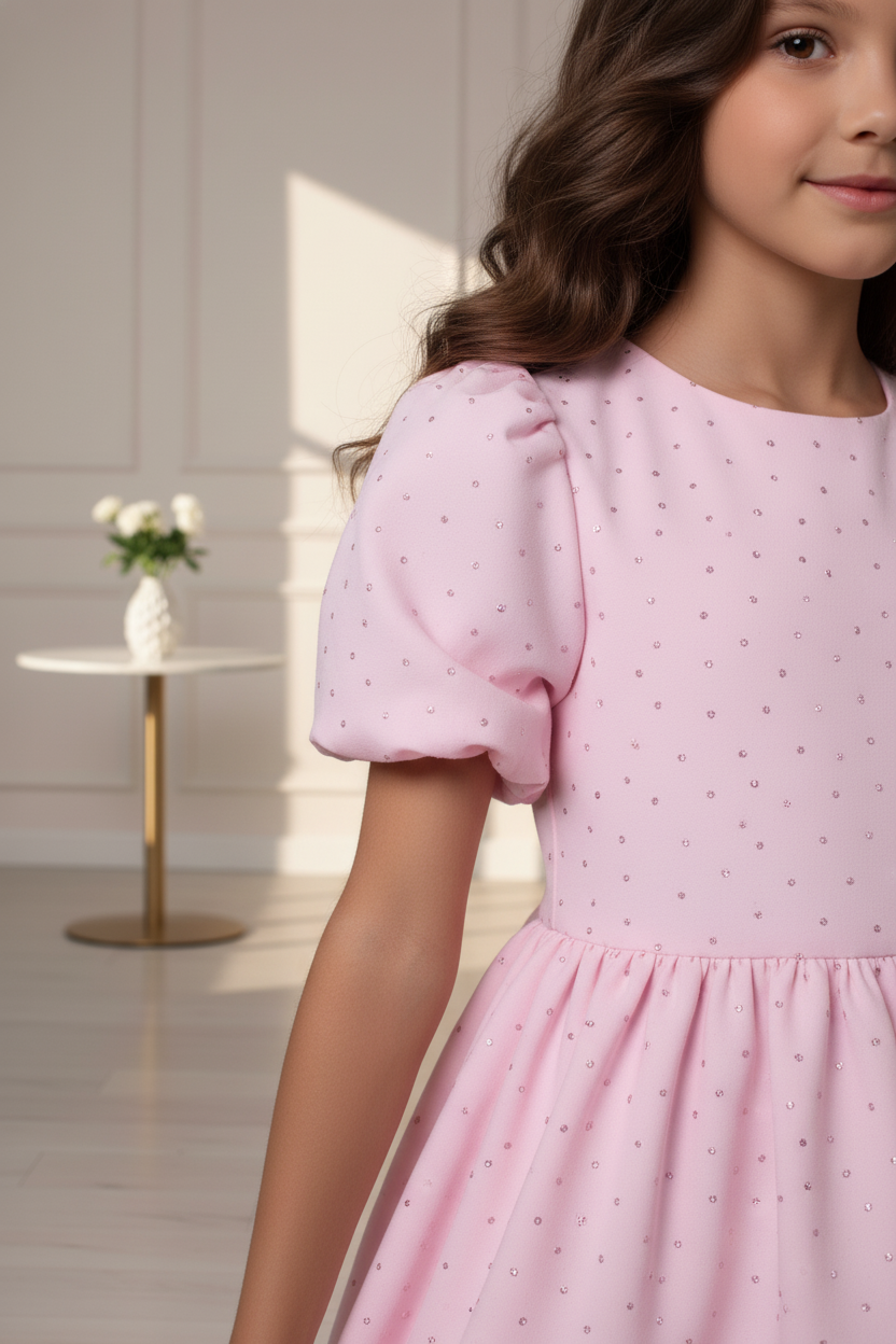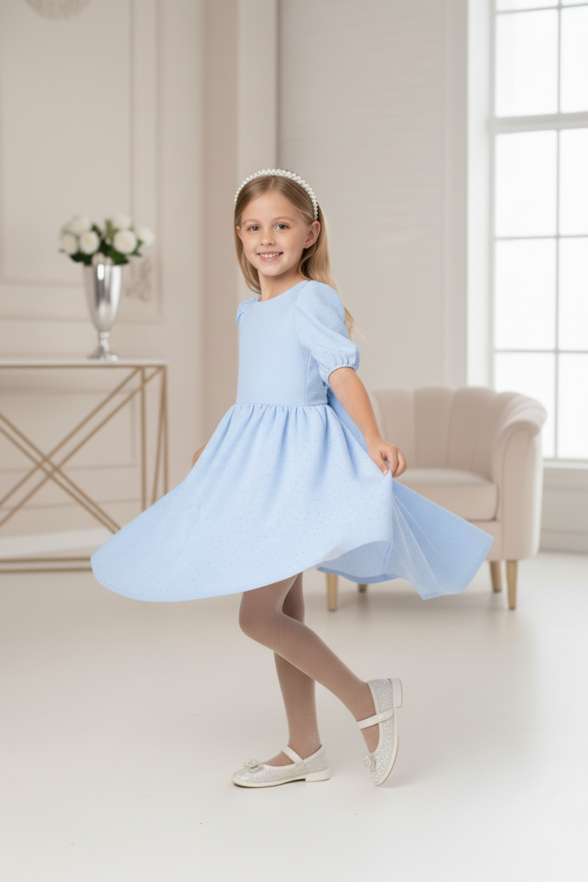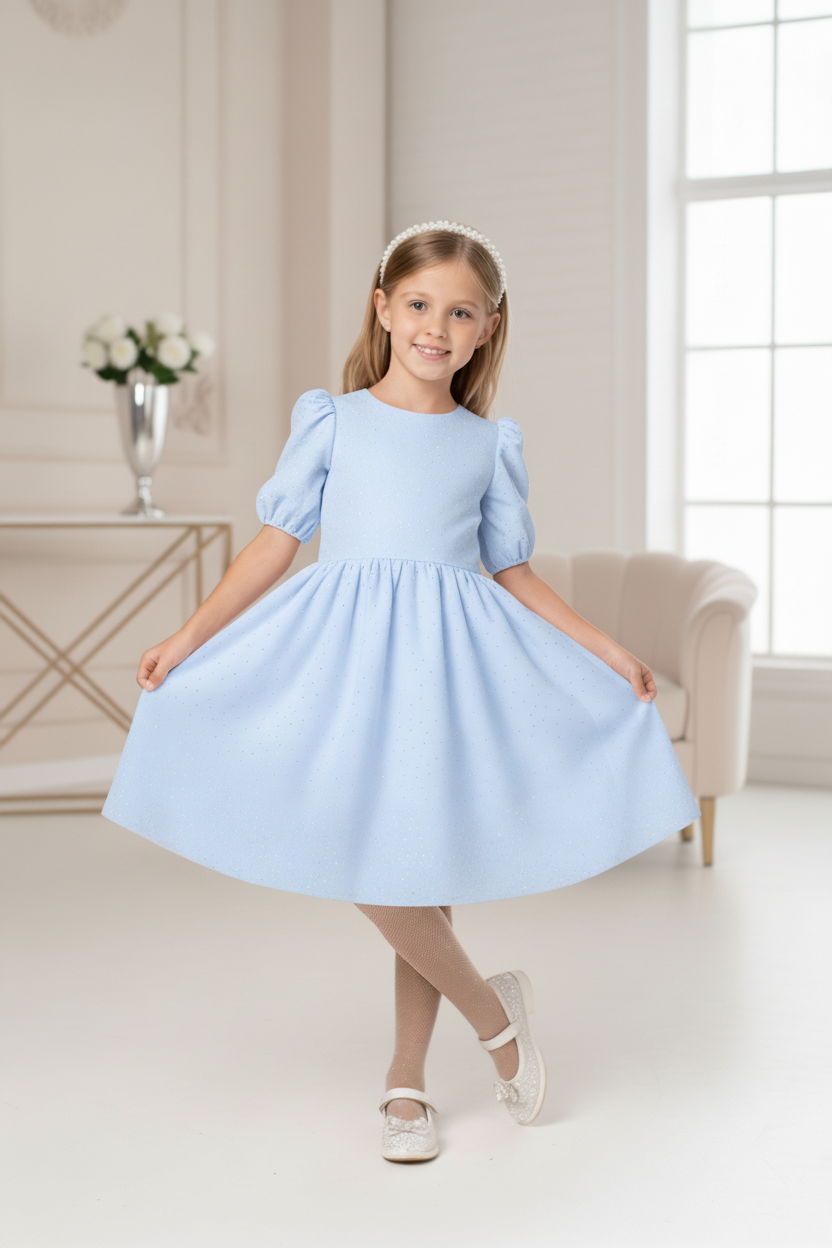 Праздничное, нарядное детское платье от бренда L&K очень нежное, стильное и невесомое. Милое платье в стиле “принцессы” декорировано блестящими стразами. Популярная классическая модель с закрытой спиной, со свободным кроем, длинное и приталенное придется по вкусу любой моднице. Платье полностью выполнено из хлопка, по объему регулируется отлетным поясом. Объемные рукава буфы – дополнительное украшение данной модели.