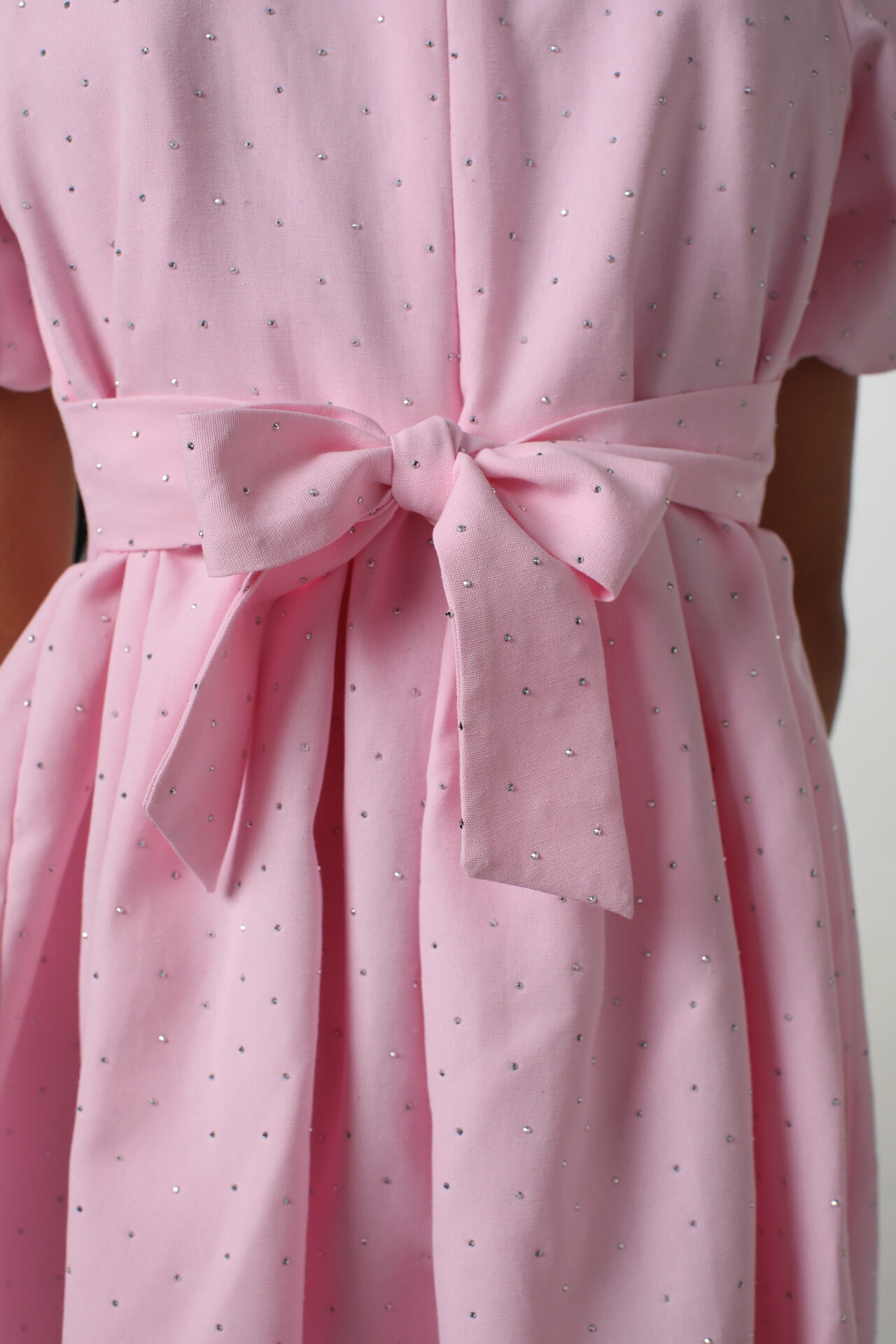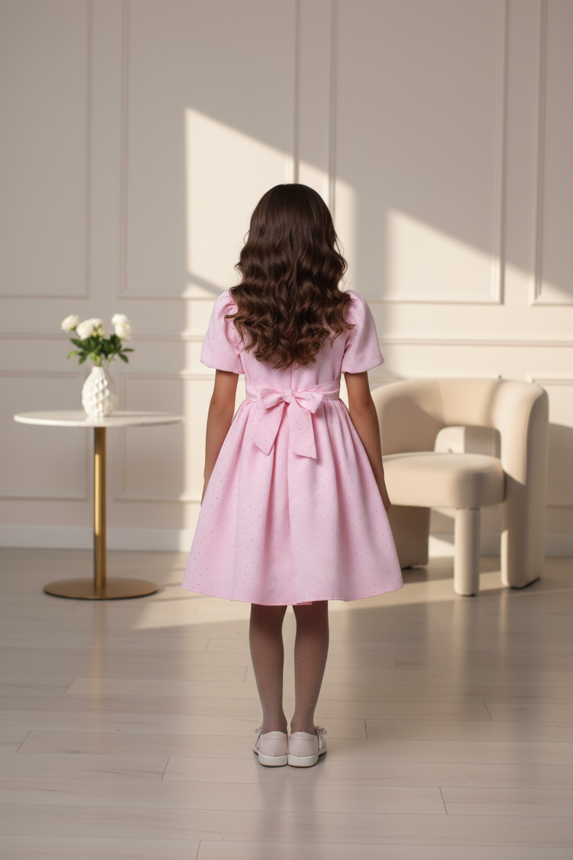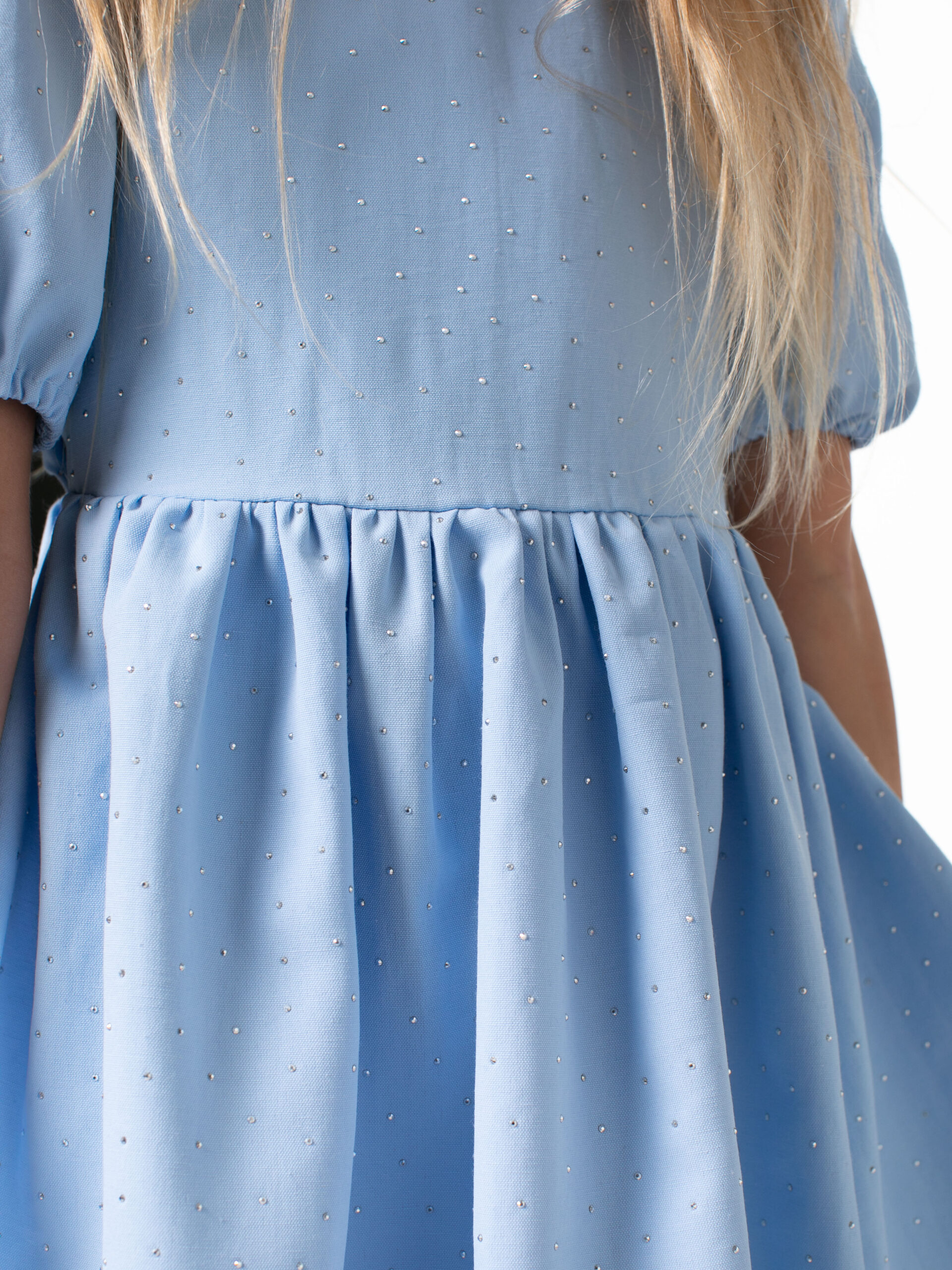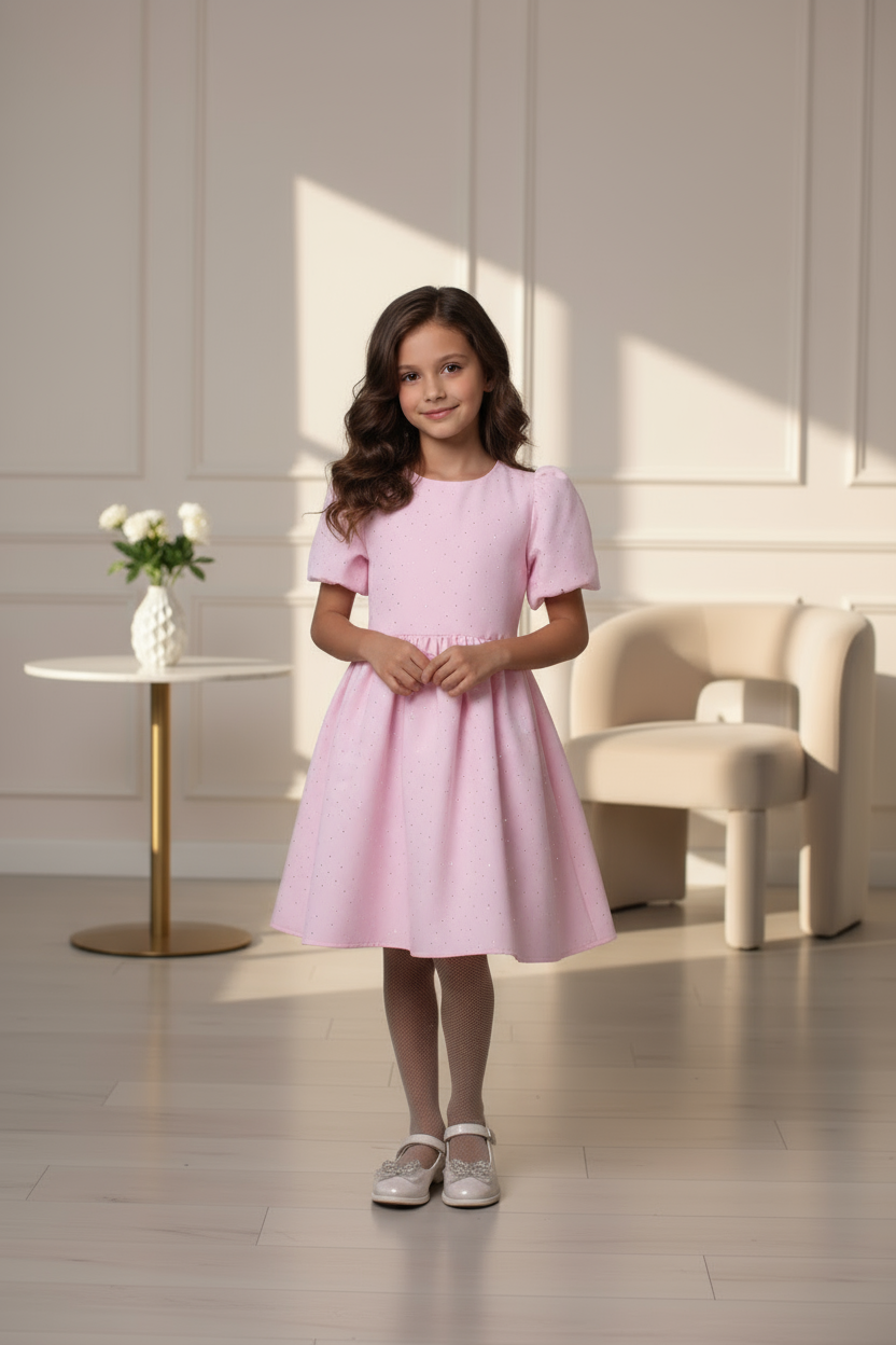 Праздничное, нарядное детское платье от бренда L&K очень нежное, стильное и невесомое. Милое платье в стиле “принцессы” декорировано блестящими стразами. Популярная классическая модель с закрытой спиной, со свободным кроем, длинное и приталенное придется по вкусу любой моднице. Платье полностью выполнено из хлопка, по объему регулируется отлетным поясом. Объемные рукава буфы – дополнительное украшение данной модели.
